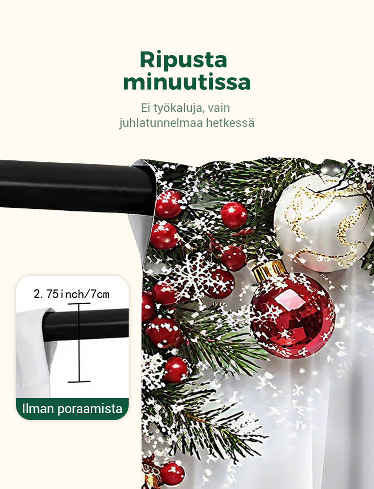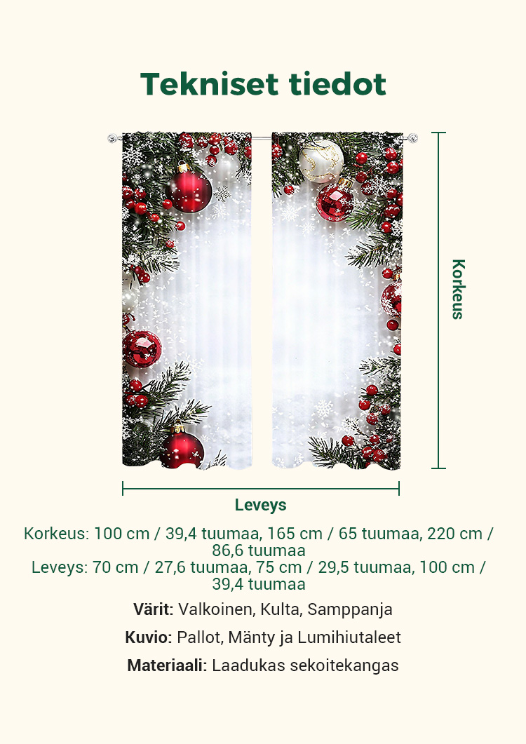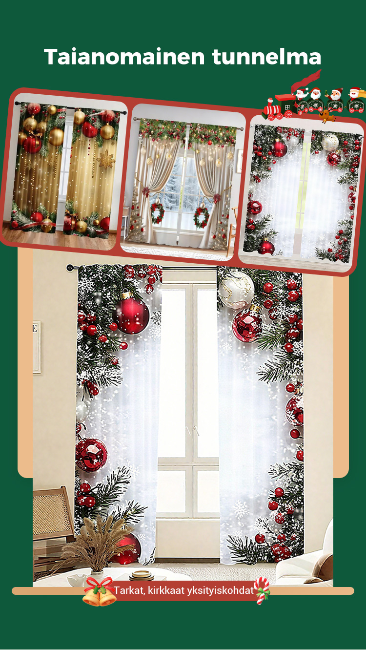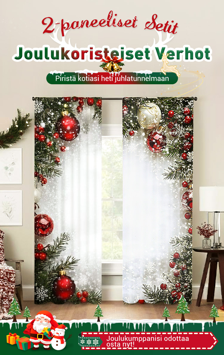 2-osainen jouluiset ikkunaverhot kodin sisustukseen