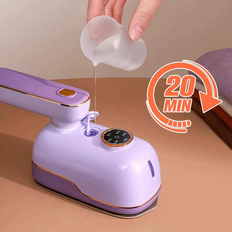 Monitoiminen kannettava silitysrauta telineellä ja mittakupilla