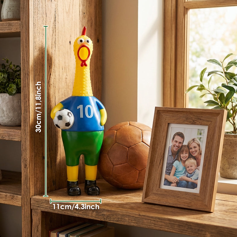UNIQUE SOCCER THEME - Dressed in a full soccer kit, this chicken adds a sporty and comical twist to the classic toy. It's an ideal novelty gift for sports fans and anyone with a quirky sense of humor.