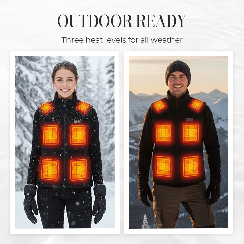 ULKOILUVALMIS: Suunniteltu lumilautailuun, vaellukseen, pyöräilyyn ja päivittäisiin asioihin, liivi sopeutuu erilaisiin elämäntapoihin. Kolmella säätämällä lämmitysnivella — 40°C, 50°C ja 60°C — voit sopeutua nopeasti muuttuviin sääolosuhteisiin.